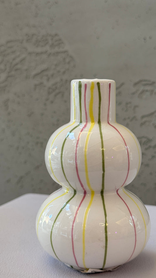 Stripe Vase klein - Gestreift in Gelb, Grün & Rose
